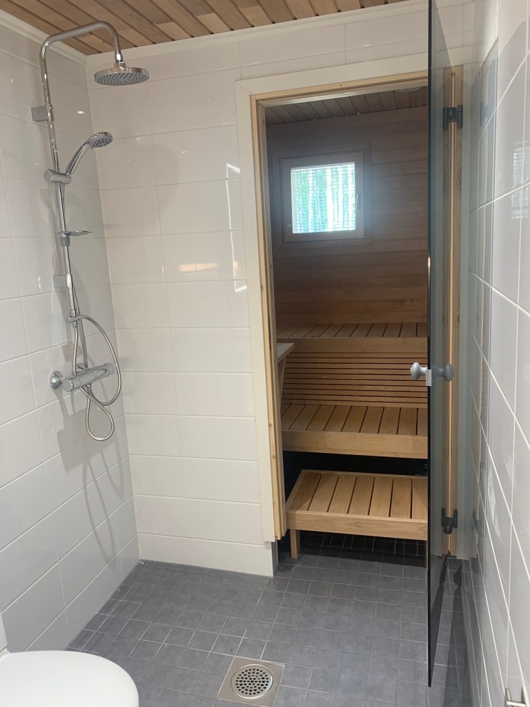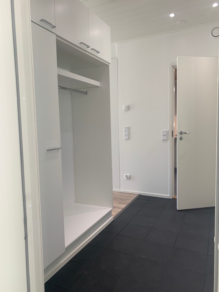 Hetteenmäen rivitalokohteen toinen vaihe valmistuu pian! Viimeajat on vietetty visusti sisustustöitä tehden. Lattiaan on asennettu valkolakattu tammiparketti. Saunat on paneloitu tervaleppäpaneelilla. Kylpyhuoneet ovat saaneet kaakelit pintoihinsa ammattitaitoisen laatoittajan toimesta. Parhaillaan työmaalla tehdään listoitustöitä. Kalusteet asennetaan viikolla 13-14. Kodikkaalta alkaa näyttää!