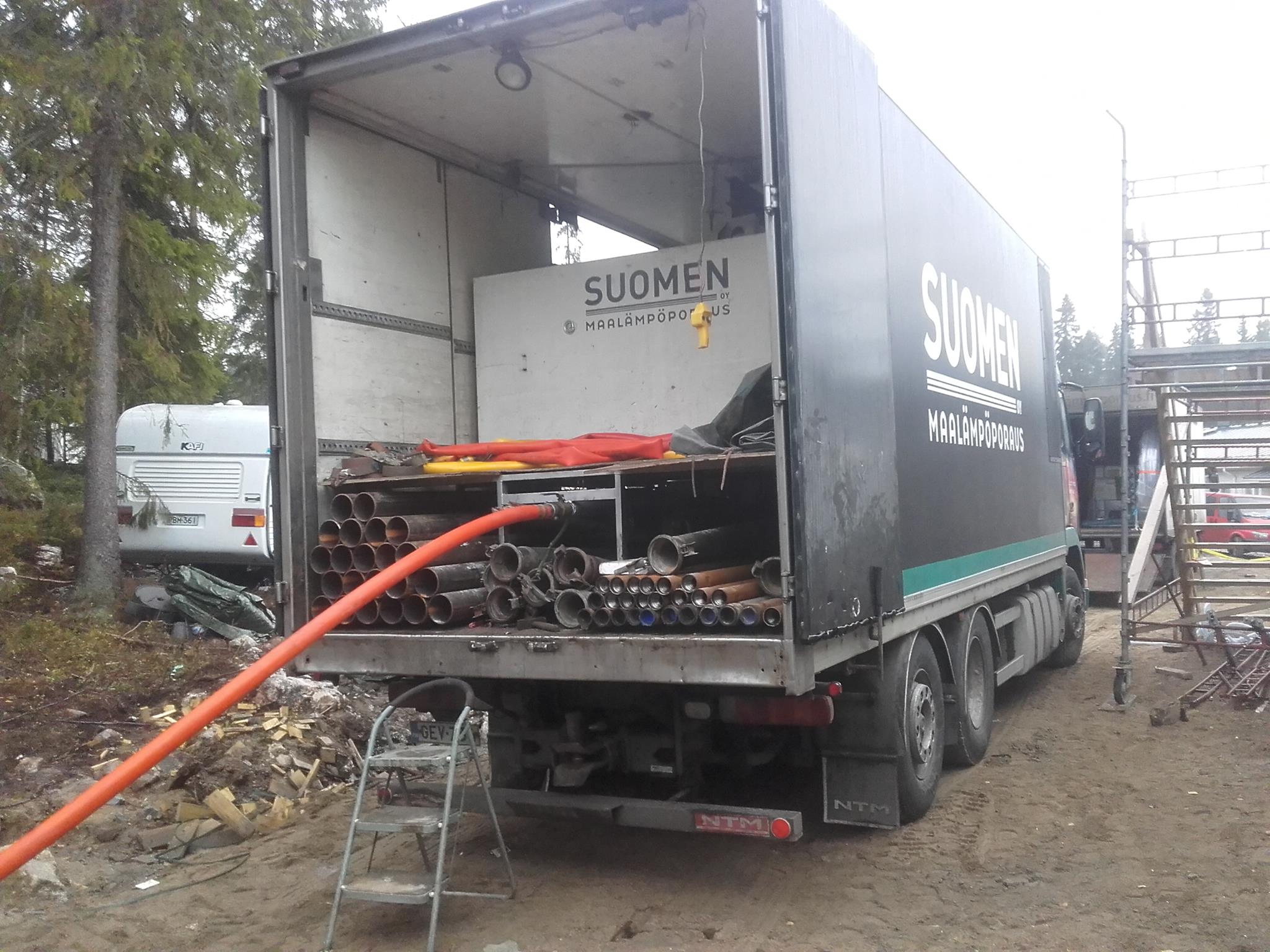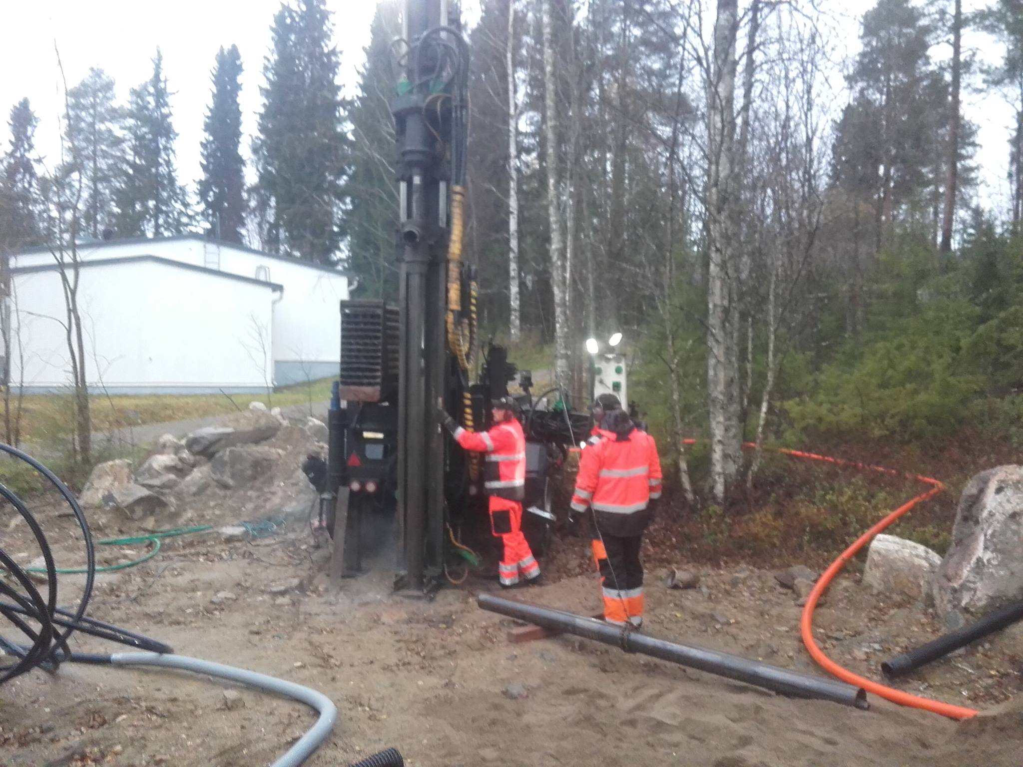 Marraskuun alkuun saatiin maalämpökaivokin porattua. Homman kävivät hoitamassa Suomen maalämpöporauksen miehet.